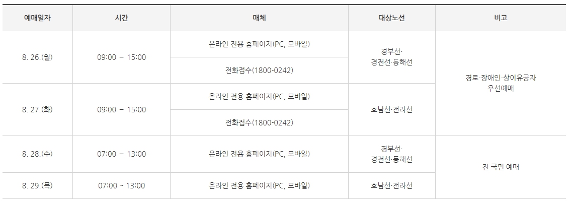 코레일의 KTX와 더불어 SRT 또한 추석 명절 승차권 예매 기간이 공지되었습니다.